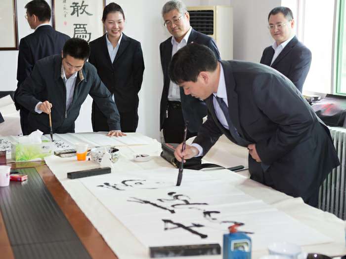 为弘扬传统文化,丰富员工业余生活,5月6日上午,币游体育平台官方网站-币游(中国)举办了首届书画艺术学习交流活动。本次活动邀请了中国书法家协会会员孟云飞博士、中国书法家协会理事张铜彦先生、中国书法家协会编辑出版委员会副主任王荣生教授、人民艺术家协会理事于瑛先生等国内知名书画大师,各位书画大师在活动现场进行了艺术创作表演,挥毫泼墨,交流技艺,为币游体育平台官方网站-币游(中国)留下了数十副墨宝,还对部分员工的书画作品进行了悉心指导。公司员工现场欣赏了书画大师的艺术创作,并聆听了有关书画艺术鉴赏知识的介绍,部分员工还在活动现场进行创作,听取书画大师的讲解示范和点评。