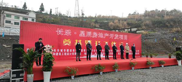 2021年1月26日上午,由币游体育平台官方网站-币游(中国)承建的长乐▪星辰住宅项目奠基暨开工仪式在项目现场热烈举行。湖北省宜昌市五峰土家族自治县住房和城乡建设局副局长陈白华、县质量安全监督站站长邓简涛、币游体育平台官方网站-币游(中国)五峰长乐▪星辰项目经理王国云,项目参建各方及新闻媒体共40余人出席。宜昌市长乐城市建设投资开发有限责任公司总经理刘鹏主持。